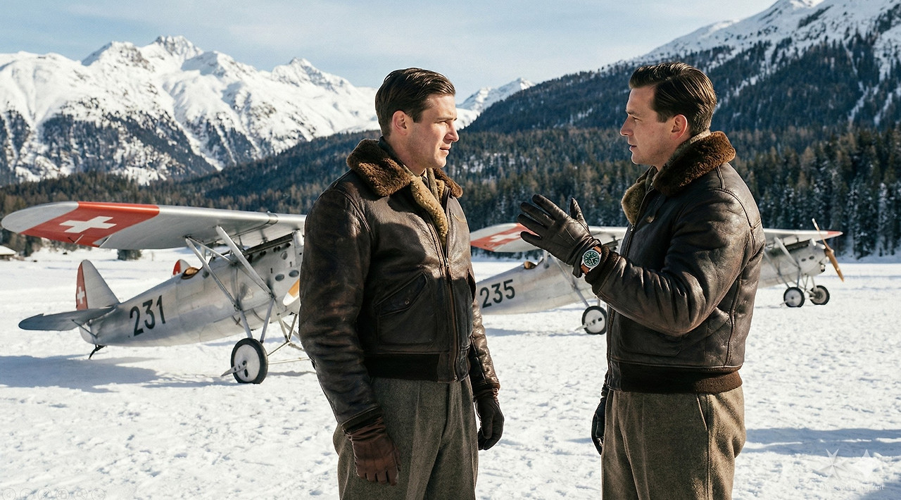 일방적인 상업광고와 달리 스위스 장교들이 시간을 동기화하는 장면이 눈에 띕니다.