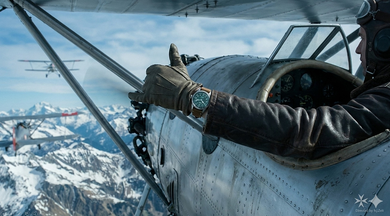 이 시계는 파일럿이 비행 중 즉각적으로 시간을 판독할 수 있도록 다이얼과 대비되는 선명한 아라비아 인덱스를 채택하고, 장갑 낀 손으로도 조작이 쉬운 오버사이즈 크라운을 장착하여 1938년 출시 당시의 모습을 고스란히 간직하고 있습니다.