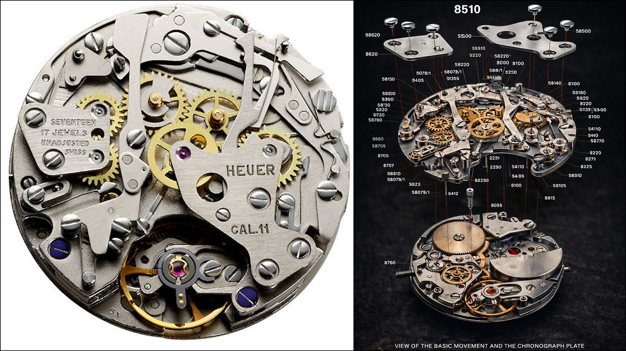 1960년대 중반, 시계 업계의 최대 과제는 '오토매틱 크로노그래프' 개발이었습니다. 호이어는 브라이틀링, 해밀턴 등과 연합군을 결성하여 마이크로 로터 방식의 '칼리버 11(Calibre 11)'을 개발했고, 1969년 세계 최초의 양산형 오토매틱 크로노그래프를 시장에 선보이며 기술적 정점에 올라섰습니다.