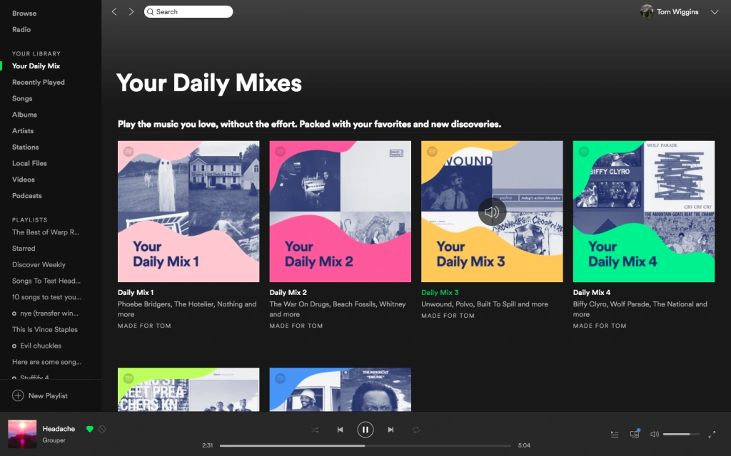 스포티파이 메인 화면엔 국내 스트리밍 서비스처럼 ‘실시간 차트’가 없다. 사용자의 청취 습관과 취향을 분석해 익숙함과 새로움을 적절히 혼합한 추천 목록과 플레이리스트가 우선이다. 국내 플레이리스트에서 자주 볼 수 있는 감성과 분위기 대신, 스포티파이의 재생목록은 직관적이고 철저히 사용자 중심으로 형성되어있다. ‘익숙함 속 생소함’의 음악 큐레이팅은 스포티파이만의 강력한 장점이다.