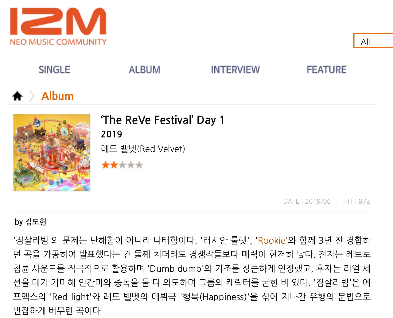 요약하자면 '짐살라빔'은 뜻있는 실험도 아니고 레드 벨벳 커리어에서 유의미한 지점도 아니다. 3년 전 SM의 웰메이드 실험 'No matter what', '소방차(Fire truck)', 'Free somebody'는 물론 앞서 언급한 레드벨벳의 싱글과 비교해도 촘촘하지 못하다.