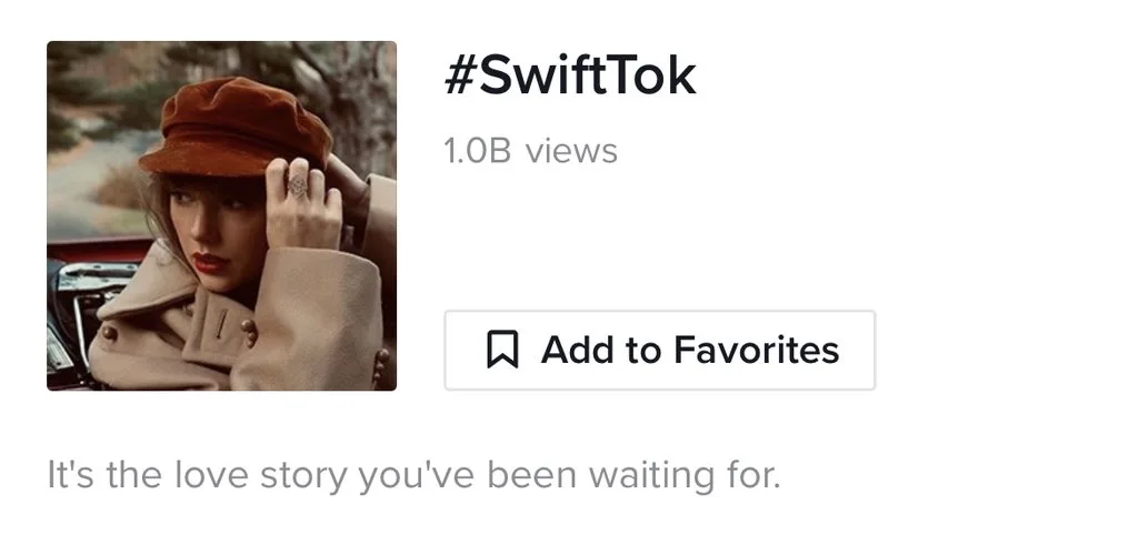 음반 마스터권을 빼앗겨 과거 자신의 작품을 새로 녹음하여 공개 중인 테일러 스위프트 역시 틱톡을 통해 튼튼한 팬덤을 확보했다. 틱톡의 #스위프트톡(#swifttok)은 46억 회 이상 조회수를 기록한 인기 해시태그다. 지난해 8월 틱톡 계정을 개설한 테일러 스위프트는 천만 구독자를 달성하며 [피어리스(Fearless)]와 [레드(Red)] 재녹음반을 홍보했다.