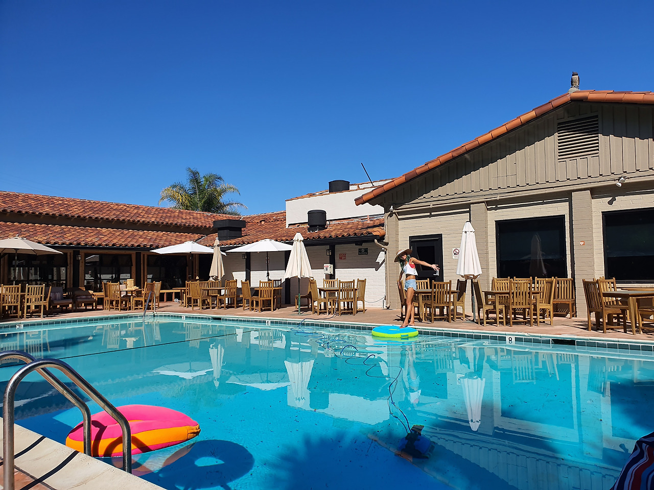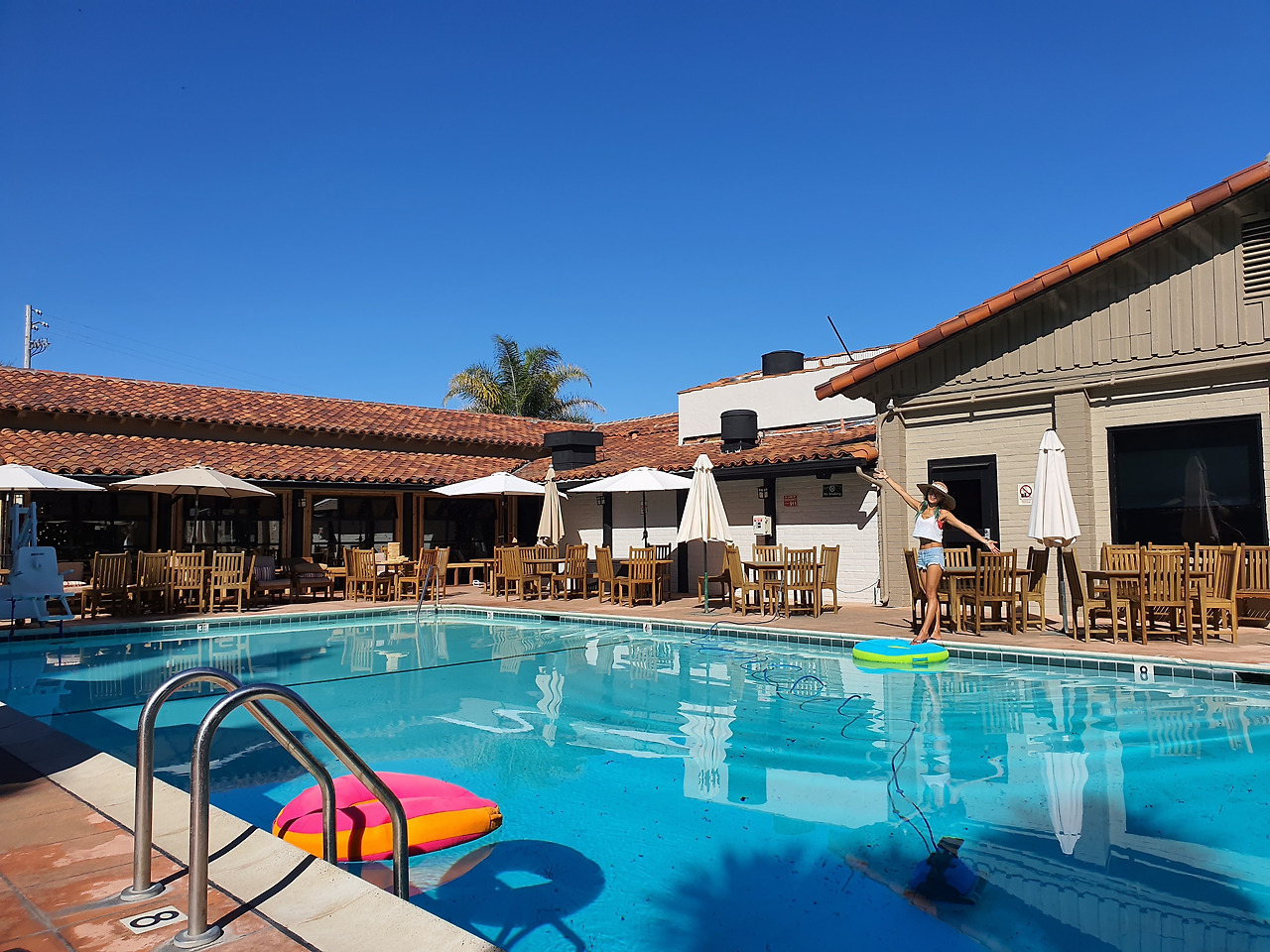 수영장 안에는 수질 청소하는 머신이 돌아다니고 있었지만,, 벌레가 둥둥 떠다녔고, 들어가고 싶지는 않았다!