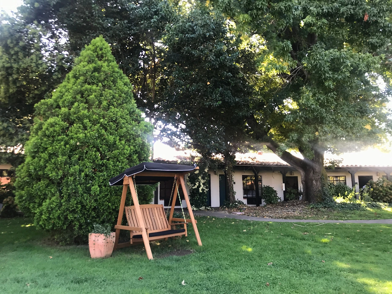 잔디 정원이 각 방마다 앞에 펼쳐져 있었고, 뒤로는 주차장이 넉넉히 있어서 우리한테는 타운하우스 같은 곳이었다.