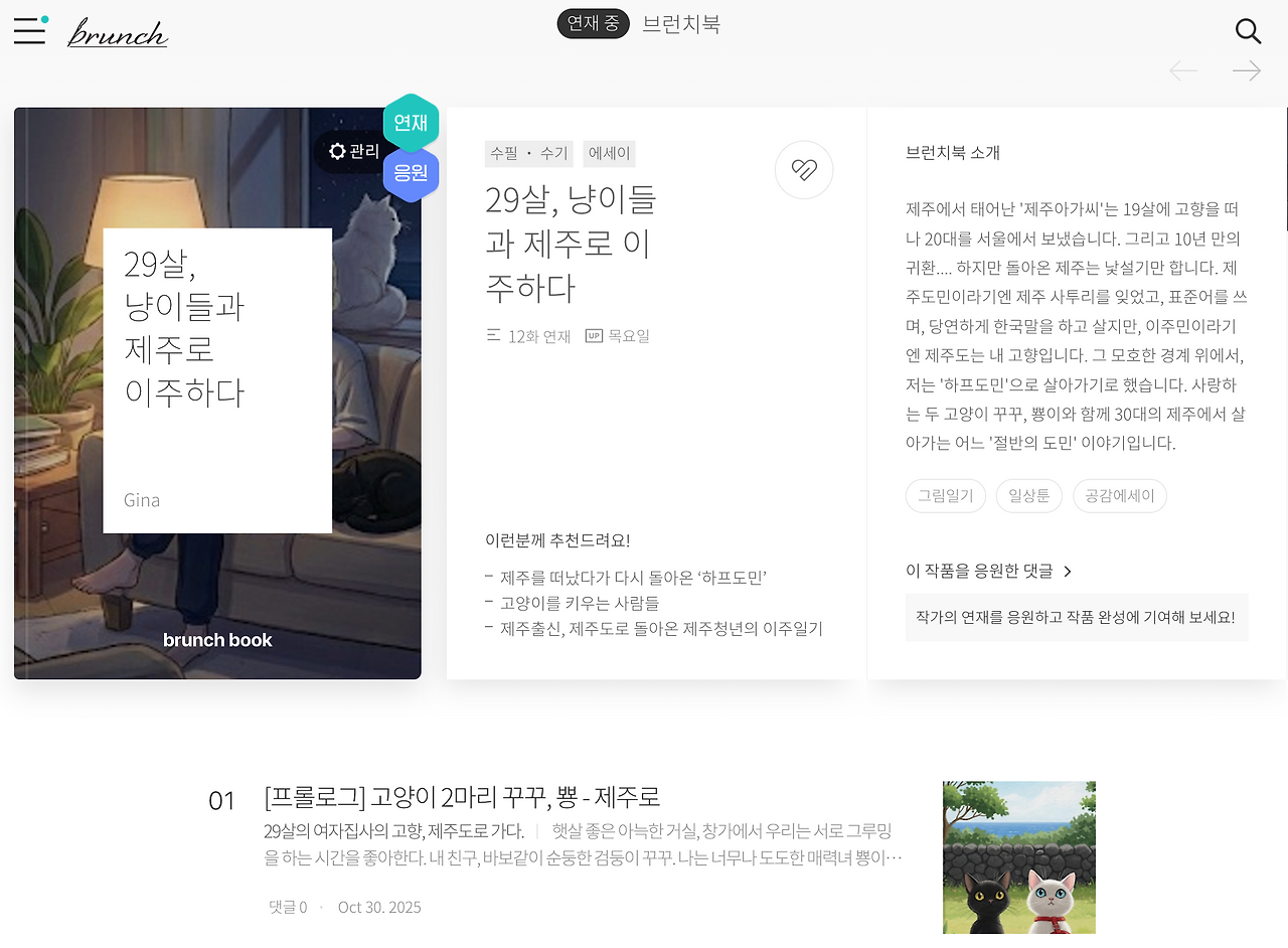 [29살 냥이들과 제주로 이주하다]로 이어지게 됩니다.