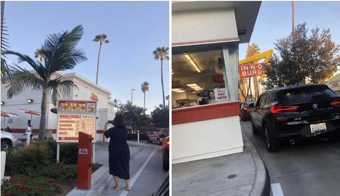 (동생들아 미안해, 아침은 '에그슬럿'미니버거, 점심은 나초와 타코, 저녁이 '인 앤 아웃'버거라니 ㅋㅋㅋ)
