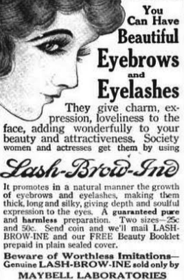 ◇ Lash-Brow-Ine~Petrolatum+Coal Dust를 혼합(Petroleum Jelly Base)하여 빗과 함께 제공(1915)