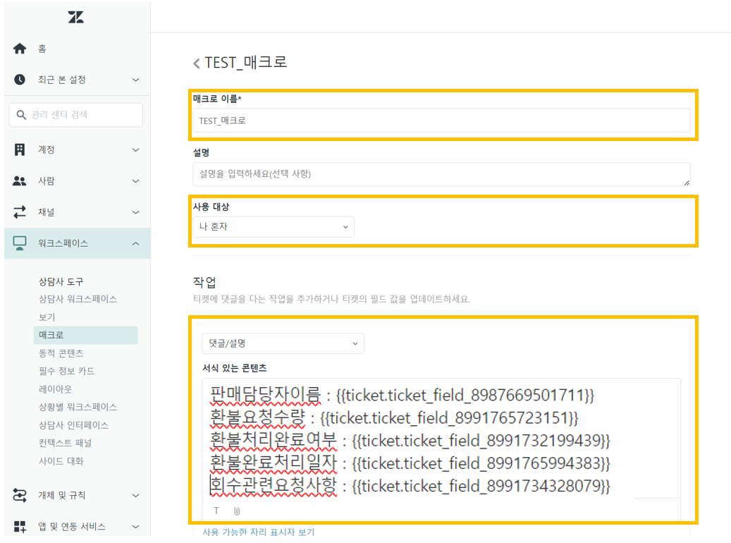 현업 담당자의 관점에서 매크로와 자리 표시자를 테스트할 때 시스템에 무리를 주지 않고 작업해야 하기 때문에 새로운 매크로를 하나 만들어보겠습니다.