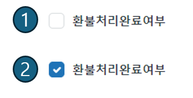 환불완료처리여부 필드는 확인란 유형입니다.