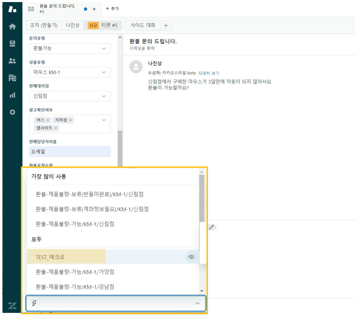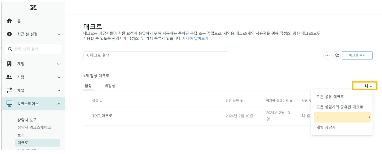 테스트 중인 매크로를 상담사가 적용하여 고객에게 잘못된 답변이 나가는 것을 방지해야 하니까요.