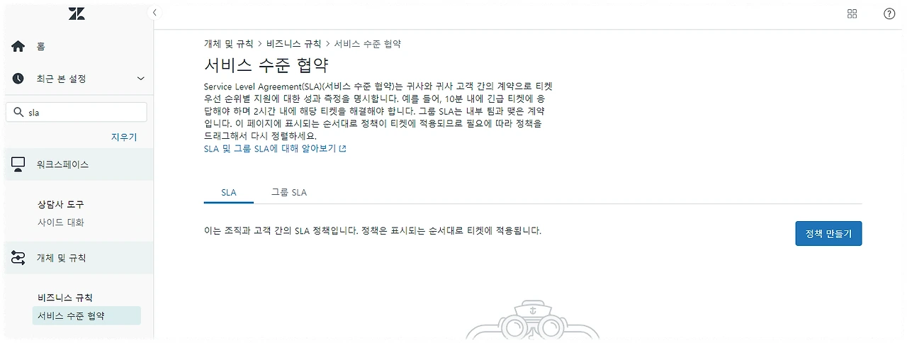 즉 각 티켓이 처리되는 데 걸린 시간을 측정할 수 있고, 문의 유형별이나 채널별로 평균 처리 시간을 측정할 수 있습니다. 또한 젠데스크에는 서비스 수준 협약이라는 기능이 포함되어 있어서 각 티켓 상황에 따른 SLA를 추적 관리할 수 있도록 돕고 있습니다.