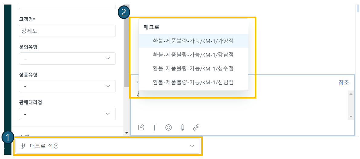 매크로는 관리자도 만들 수 있고, 일반 상담사도 매크로를 만드는 것이 가능합니다.