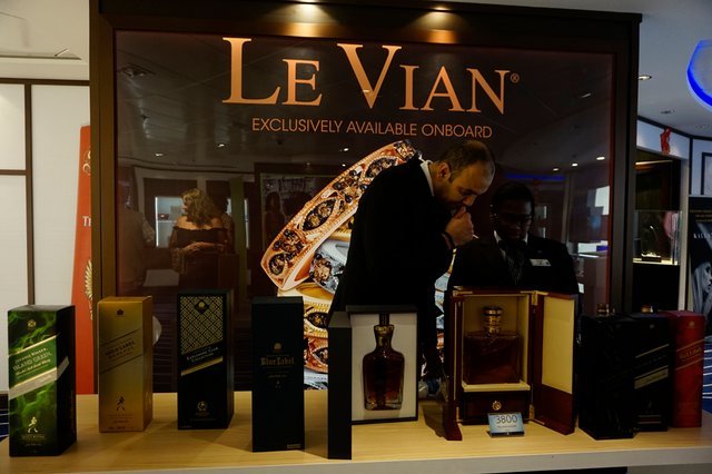 9층에는 우리 캐빈이 있는 방이자 애플 제품을 판매하고 인터넷을 이용할 수 있는 아이라운지가 있다. 6층에서 8층까지는 전부 객실이고 5층 엠포리움에는 면세점이 위치해 있다. 화장품 보석 시계 셀러브리티 크루즈의 기념품 술 등을 파는데 나는 술 면세점만을 늘 눈여겨 봤다. 크루즈에서 면세 물품을 살 거면 최대한 늦게 사는 게 좋다 뒤로 갈수록 특가 이벤트를 많이 하기 때문이다.