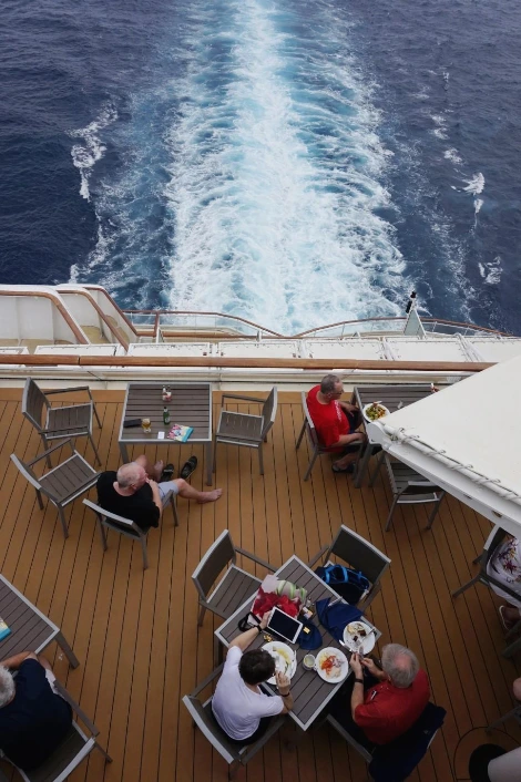 10층에는 야외 수영장과 실내 수영장이 있고 수영장을 끼고 양 사이드로 월풀 욕조가 있다. 상하이에서 홍콩의 구간까지는 날씨가 흐리고 추워서 야외 수영장은 이용할 수 없었는데 동남아로 접어들면서 수영장과 선베드는 늘 사람들로 북적였다. 야외 수영장이 있는 층에는 부페를 이용할 수 있는 오션뷰 카페가 있어서 밤 늦도록 출출한 배를 책임져 주었다