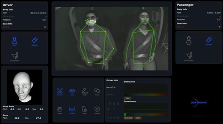 차량 실내 모니터링 시스템은 2D 적외선 카메라와 인공지능을 접목한 종합 기술이에요. 이를 통해 전방주시 태만, 졸음, 집중력 저하, 스마트폰 사용 등 운전자의 상황을 파악할 수 있습니다. 또한, 저조도, 직사광선, 야간 등의 환경에서도 정확한 안면 인식이 가능하다는 점에서 운전자뿐만 아니라 동승자의 안전 및 편의를 고려한 기술이라고 볼 수 있어요.
