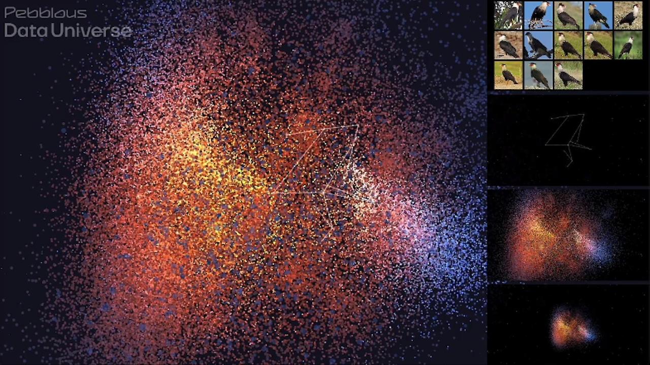 페블러스의 데이터 우주는 우리의 공간과 시간을 가득 채우고 있는 방대한 종류의 데이터 활용이 가능해요. 픽셀, 동물, 얼굴, 예술과 역사 등 종류의 제한 없이 모든 것이 데이터 우주를 형성하고 있습니다.
