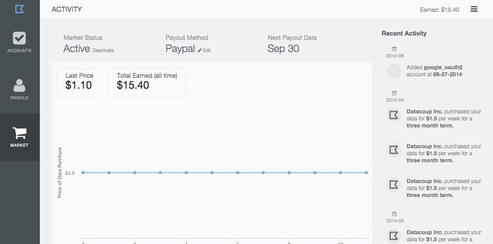 최근 이러한 데이터 유통의 구조적인 불합리성을 해소하고자 하는 스타트업 업체가 새로 등장했는데, 미국 뉴욕에 위치하고 있는 데이터 쿱(Datacoup)이다. 데이터 쿱(Datacoup)은 사람들이 자신의 개인 정보의 가치를 잠금 해제할 수 있도록 돕는다 것을 기업의 미션으로 삼는다.