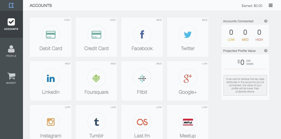 물론 기본적인 성별, 교육 수준, 또는 소득 수준 등의 프로파일 데이터도 수집하며, 해당되는 기본 프로파일 데이터의 시장 수요와 가치에 따라 각 개인이 받을 수 있는 기본 가격이 결정된다. 각 분야 내에서도 제공하고자 하는 정보의 범위와 양을 사용자 스스로 정할 수 있으며, 제공하는 정보량에 따라 받게 되는 총액은 달라진다. 사용자들은 직관적으로 얼마만큼 의 금전적인 보상을 얻을 수 있는지 바로 확인할 수 있다. 또한 데이터 쿱을 통한 실제 금전적인 보상액은 향후 최종 기업의 구매 의향 등에 따라 일부 변동된다.