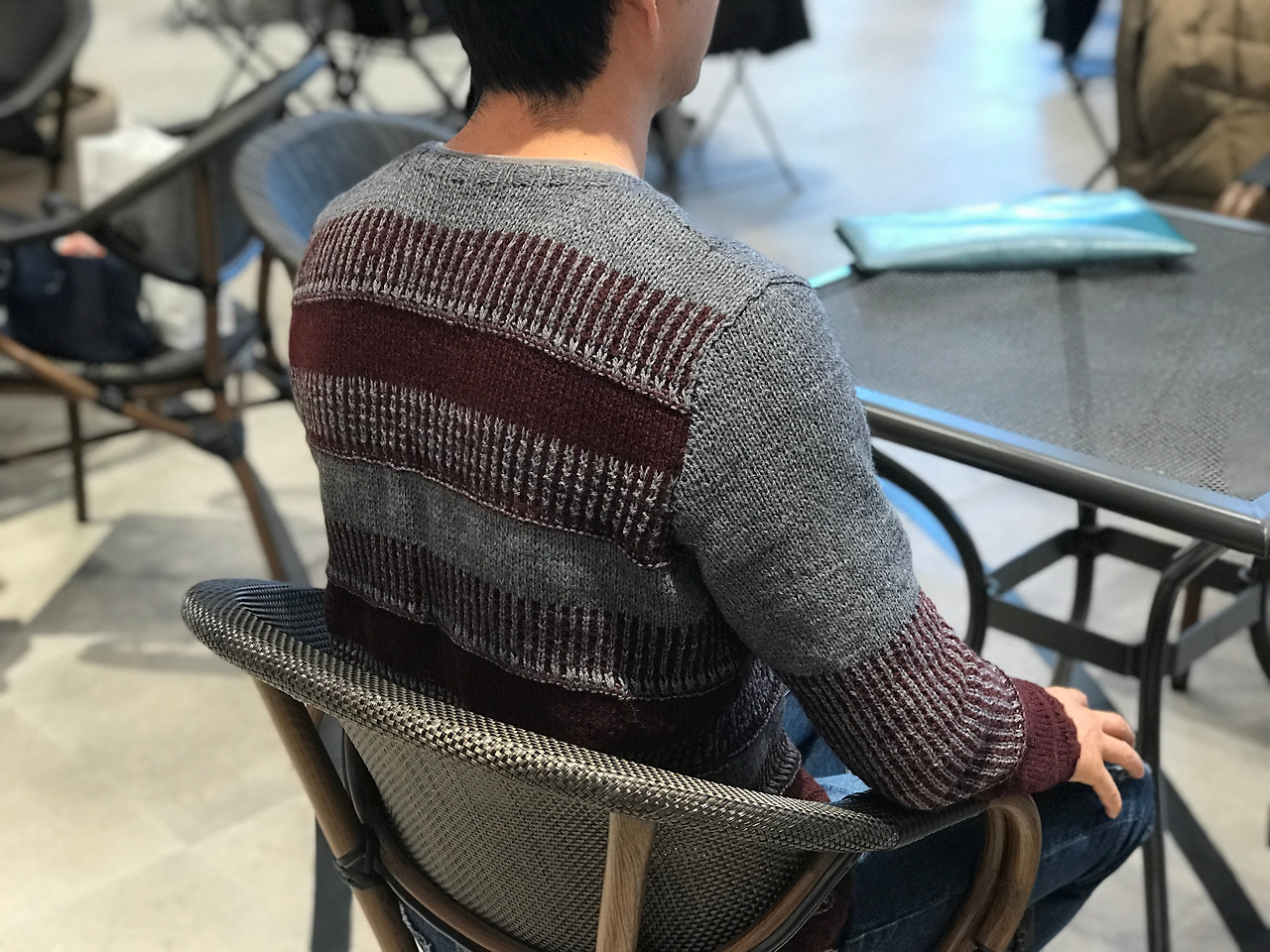 남편의 예를 들어보자면 몸이 촥 감기는 핏을 좋아하기 때문에 실의 굵기 선택에 신중해야 한다. 아란 정도의 도톰한 굵기의 실로 뜬 풀오버는 ‘너무 두툼해서 덥고 겉옷을 입기에 불편하다.”며 벗어던졌다. 얇고 가벼운 옷을 원하여 핑어링 굵기의 실을 선택해서 뜬 풀오버는 “너무 가볍고 헐렐레하여 불편하다.”며 벗어던졌다. 아란과 핑어링의 중간 사이즈인 DK 굵기의 실을, 약간 작은 바늘을 사용하여 단단한 편물이 나오게끔 떠 주자 그제야 “이 옷은 입을만하네.”라는 말을 들었다. 이처럼 비교적 얇고 탄탄한 조직의 편물을 좋아하는 남편은 DK 굵기에 꼬임이 적당히 들어간 모성분의 실로 떠준 옷을 좋아한다. 체형에 어울리는 옷을 만들기 위해서는 실의 굵기를 선택하는 데에도 많은 고민이 들어간다.