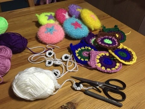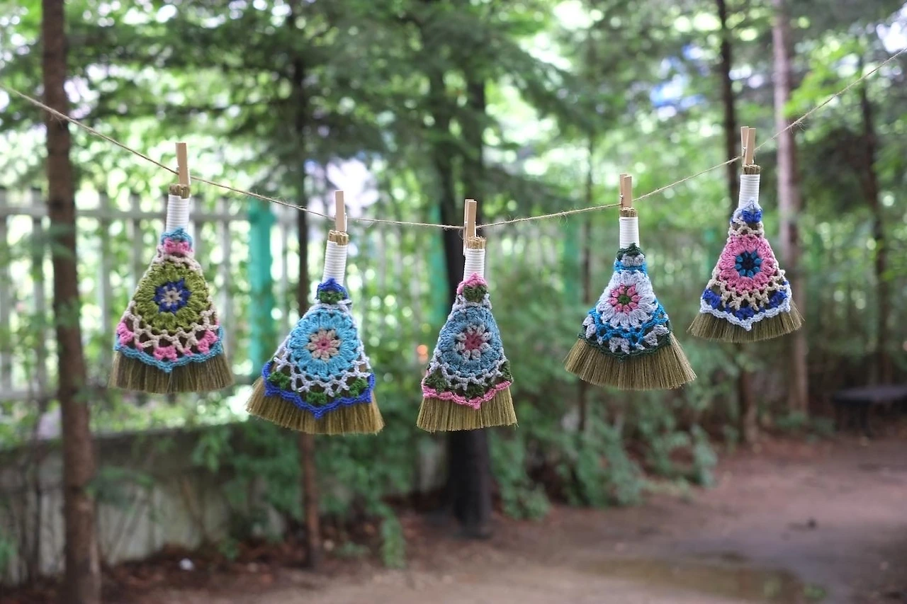 수세미, 어린이용 동전지갑 또는 사탕 지갑, 머리핀, 파우치, 가방, 발매트 등. 작은 소품 위주로 준비했다. 이는 오가며 구경하다가 기분전환으로 구입해도 부담스럽지 않을 금액의 아기자기한 물건이 플리마켓 특성상 잘 팔릴 거라 예상했기 때문이다. 신청을 하고 마켓이 열리는 날까지 나는 쉴틈 없이 뜨개를 했다. 한 달의 시간 동안 혼자서 준비해야 하는 빠듯한 일정이다. 테이블 위가 휑해 보이면 안 되므로 정말 열심히 떴다. 어려운 것은 뜨개가 아니라 부족한 시간이었다. 잠을 줄였고 육아와 살림 중에 생기는 잠시의 틈을 이용해 뜨개를 했다. 뜨개는 기계의 힘을 빌릴 수 있는 것이 아닌 오롯이 손으로만 완성하는 작업이기 때문에 시간과의 싸움이다.