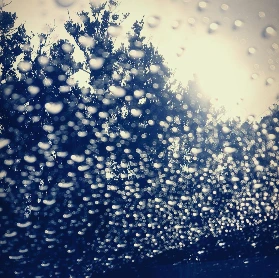 바닥에 내려앉아 고여있던 빗물 웅덩이의 빗물이 다시 위로 솟구쳐 올랐다.