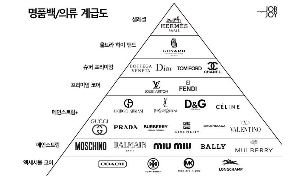 [에르메스] - [디올, 샤넬] - [루이비통] - [구찌]로 이어지는 계급이 있다.