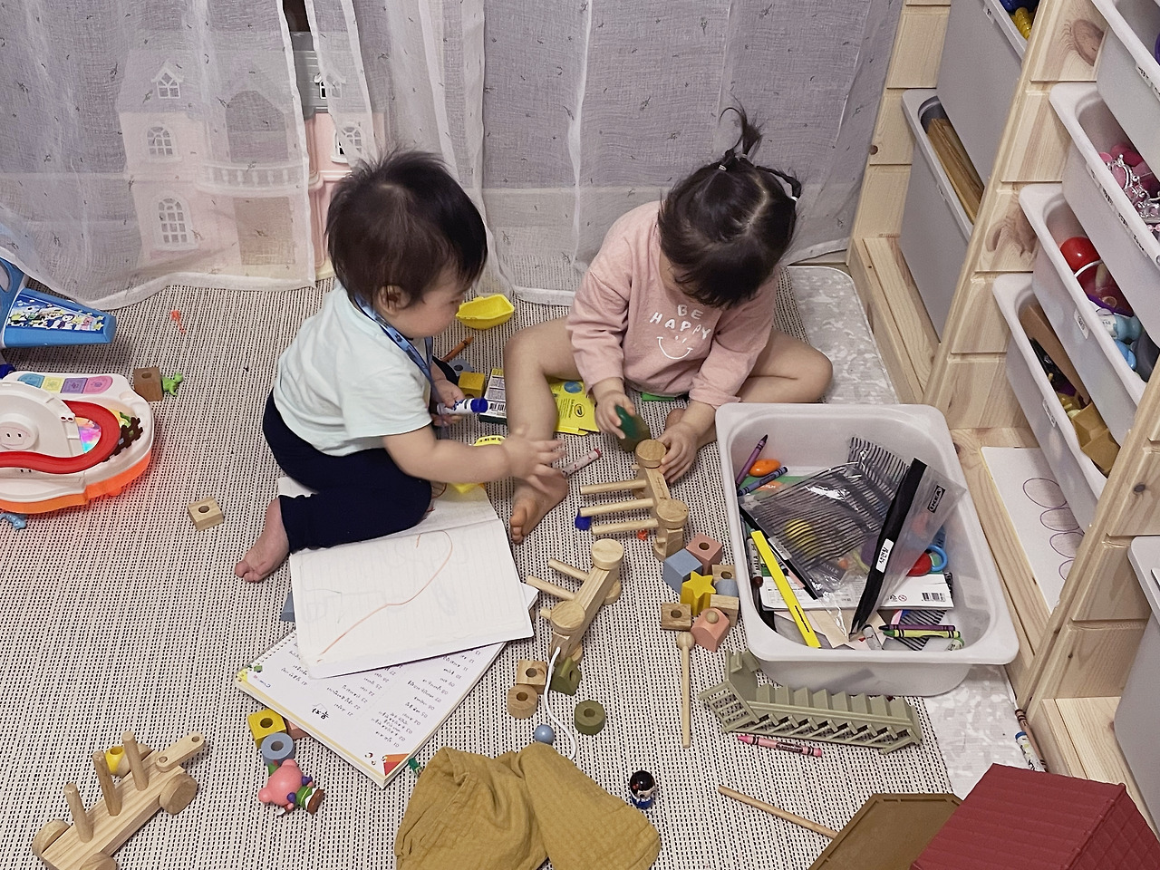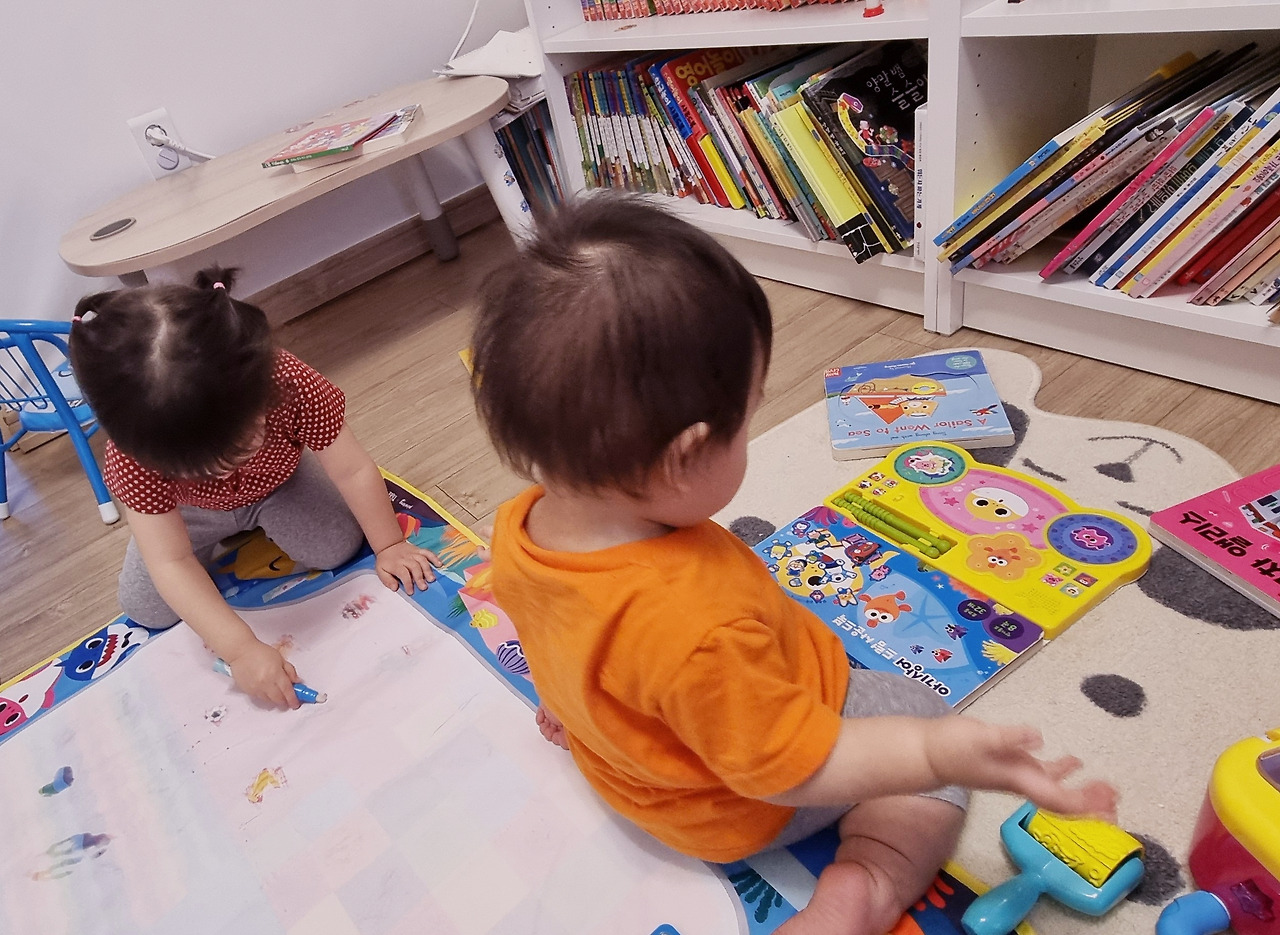 분명 24개월 차이인데, 어느새 덩치가 비슷해져서 옷을 공유하기 시작한 첫째딸과 둘째아들
