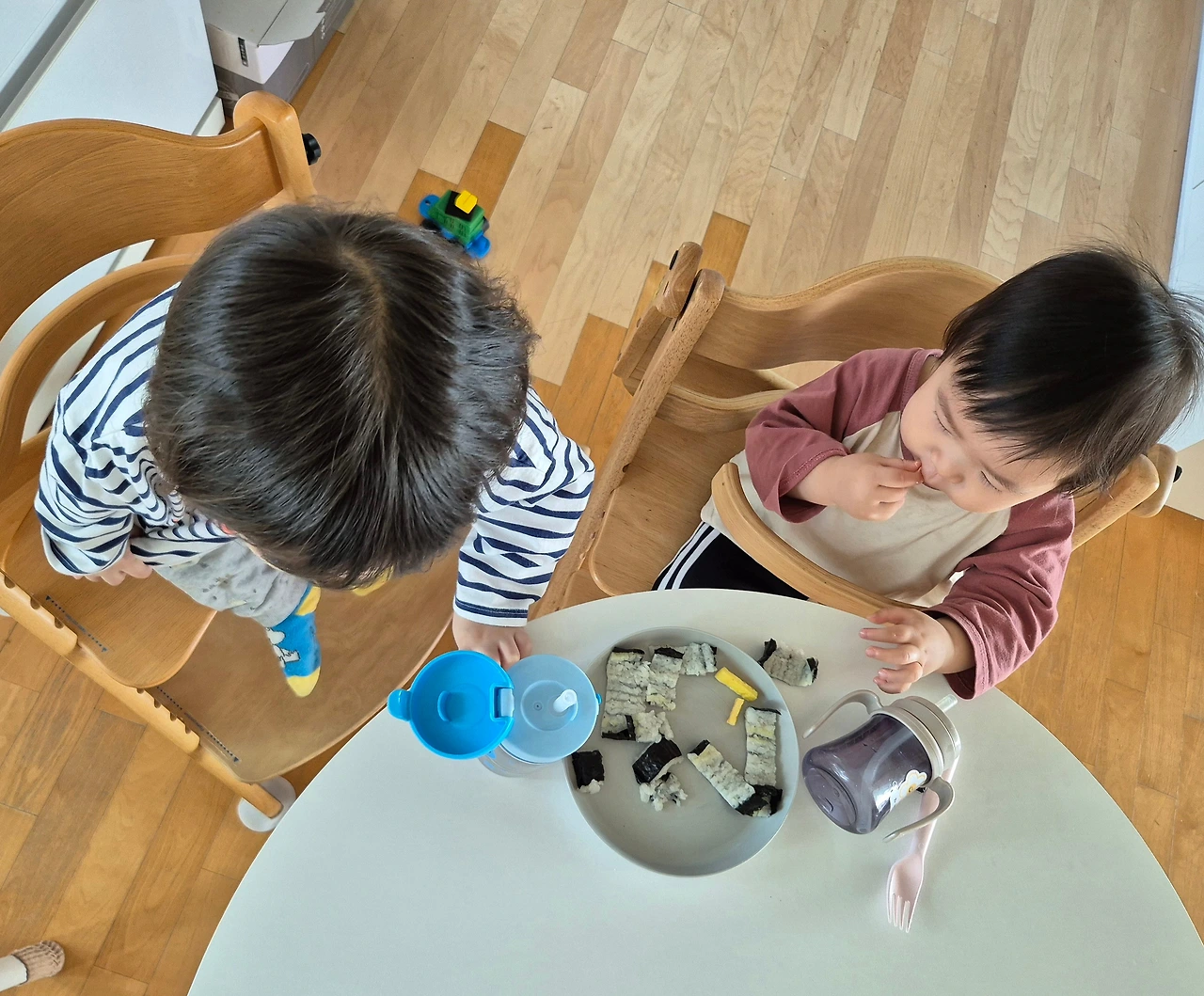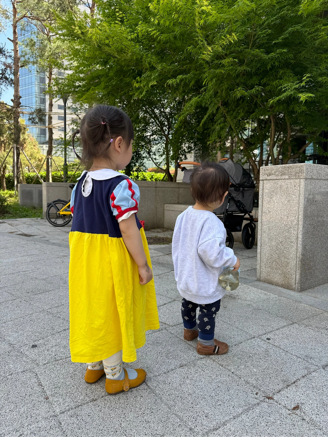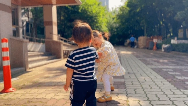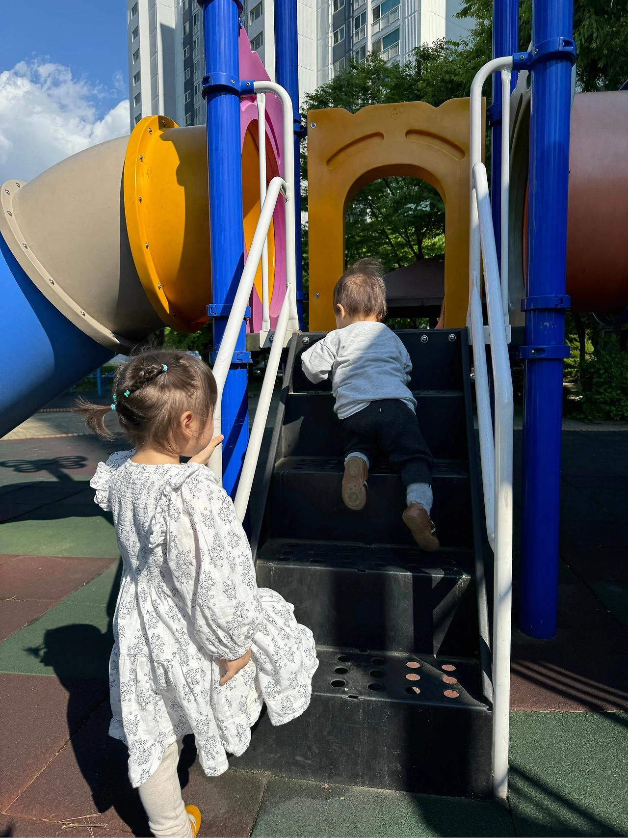 그래서일까. 22개월 차 두 아이는 어느덧 투닥대면서도 손 꼭 잡고 다니는 '남매'가 되었다.