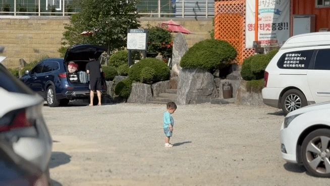 그렇게 속으로 참을 인자를 100번 넘게 새기며 고군분투(?)하고 있을 때였다. 저 멀리서 파란색 SUV가 글램핑 주차장에 스르륵 들어오는 것이 보였다. 그 순간 나도 모르게, 수영장에 있는 모든 사람들이 들을 수 있을 정도로 크게 외쳤다.