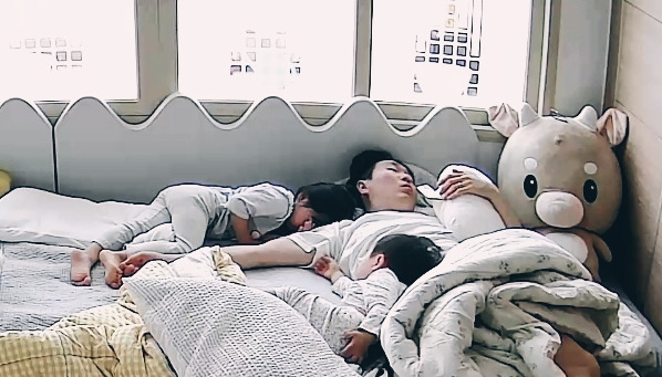 아니나 다를까. 공휴일이었던 화요일과 목요일 사이에 낀 수요일, 밤늦게까지 야근을 했다. 집에 도착하니 밤 11시라 간단히 씻고 바로 잠을 청했다. 그렇게 눈을 잠깐 감았다 떴더니 몸이 묵직했다. '뭐지' 싶었던 찰나, 두 아이가 내 몸에 찰싹 달라붙어 있었던 것.