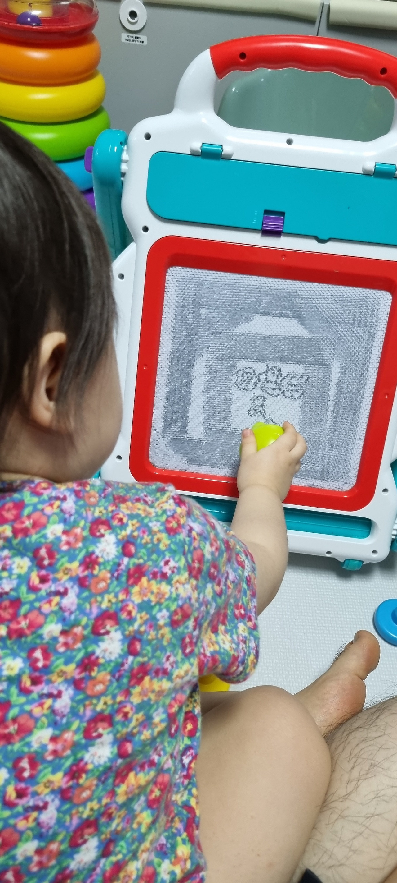 꿀떡이는 내가 휴직을 시작할 무렵 19개월이었는데, 당시만 해도 단어 몇 가지를 어눌한 발음으로 말하고 조합하는 것까지는 어려워하고 있었다. 그런데 불과 3개월이 지난 지금, 꿀떡이는 문장으로 본인의 감정이나 원하는 바를 거의 완벽히 표현한다. 예를 들어, '아빠. 저 미끄럼틀 꿀떡이가 올라가면, 아빠가 먼저 내려가고 꿀떡이가 내려가' 라던지, '아빠는 여기 자리에 착 앉아 있고, 꿀떡이는 저기 가서 책이랑 카드 가지고 와서 아빠한테 줄 거야'라는 식의 문장을 말하곤 한다. 얼마 전 인근 육아지원센터 놀이방에서도 꿀떡이가 소꿉놀이를 하던 중 '아... 칼이랑 도마 어디 있지. 정말 답답하네. 심란해'라고 중얼거리는 것을 다른 아이 어머니가 들으시고 폭소를 하신 적이 있는데, 아무래도 아이 할아버지가 충청도 분이시고 나도 그 영향을 받아서인지 아이가 충청도 사투리도 섞어서 쓰고 있는 것이다. 아이 앞에서는 정말 말조심.