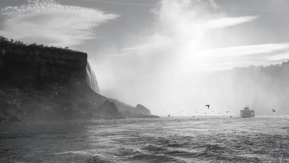 이곳에는 폭포를 '타려는' 사람들의 도전도 끊이지 않습니다. 샘 패치는 1829년 세계 최초로 고트 섬에서 뛰어내렸는데 놀랍게도 목숨을 부지. 또 애니 에드슨 테일러는 1901년 최초로 나무통을 타고 폭포를 건넜는데 그녀는 '안개의 여왕'이라는 주제로 강연을 해 한밑천 잡으려고 했지만 성공하지는 못했다고 합니다. 하지만 그 이후 '안개의 하녀'라는 이름의 유람선이 관광객들을 싣고 캐나다 쪽이나 미국 쪽에서 나이아가라 폭포의 물보라 속으로 들어가는 코스를 운영하고 있습니다. 저 또한 이 안개의 하녀 유람선을 타고 물보라를 뚫고 사진을 찍었습니다. 참고로 나이아가라에서 투신 시도하고 살아남으면 어마어마한 벌금을 문다고 합니다. 실제 투신을 했다가 살아남아서 벌금을 문 사람이 있는데 두 번 시도하고 결국 하늘나라로 갔다고 합니다.