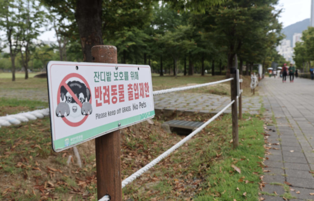 부산시민공원은 잔디 보호를 위해 반려동물의 잔디 출입을 제한하고 있다. 공공 디자인 전문가들은 전면은 아니더라도, 반려동물과 시민이 함께 이용할 수 있는 잔디 구역을 일부 정해 개방하는 것도 한 가지 방법이 될 수 있다고 지적한다.