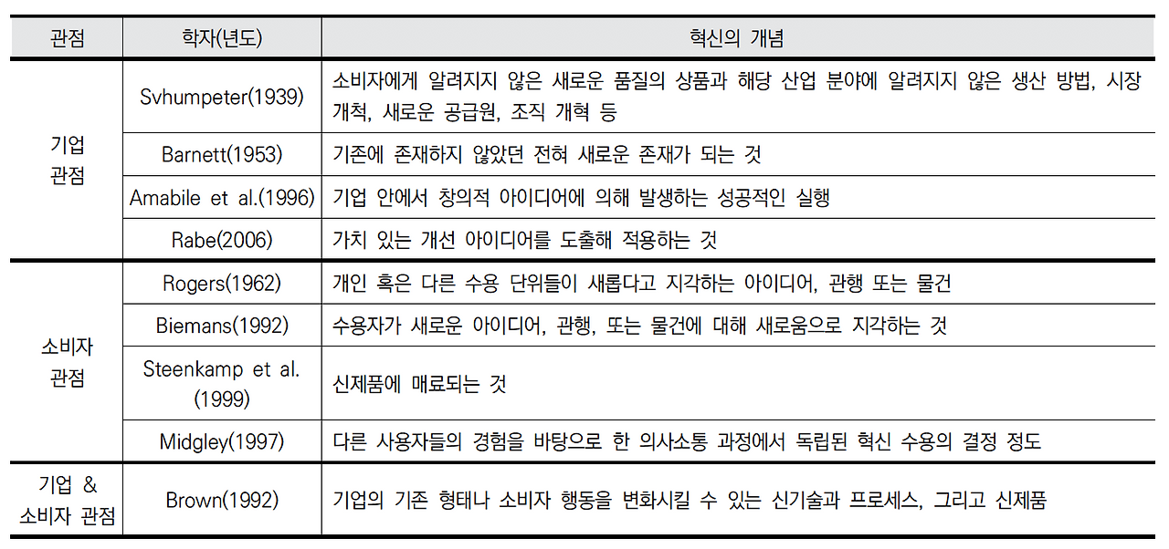 주요 관점에 따라 혁신의 개념을 구분할 수 있다.
