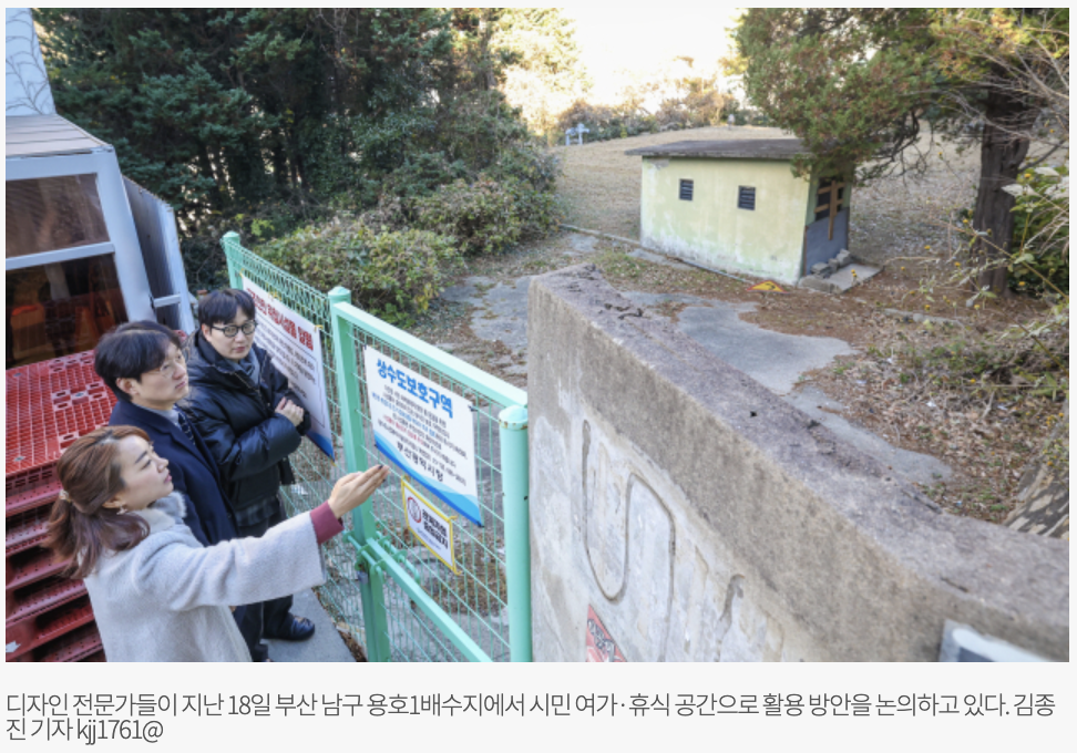 전문가들은 부산 곳곳에 주거지, 산책로와 가까워 활용도가 높은 배수지 공간을 눈여겨봐야 한다고 입을 모은다. 부산디자인진흥원 김유준 과장은 “각 구군마다 있는 배수지를 지역 특색에 맞춰 새로운 기능과 디자인을 입힌다면 주민 편익과 복지를 증진시킬 것으로 기대된다”라고 말했다.