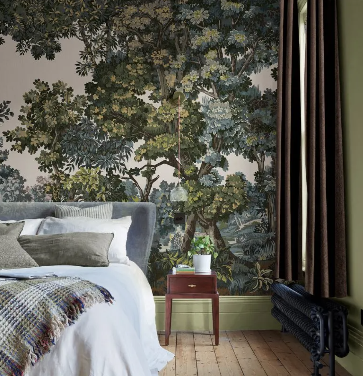Elderton은 중성 톤의 특성을 살려 다양한 색상과 조화를 이루는 것이 특징입니다. 특히 크리미 한 중성 색상인 'Honey Pot'과 조합하면 공간에 따뜻함과 부드러움을 더할 수 있습니다. 또한, '컬러 드렌칭(Color Drenching)' 기법을 사용해 벽과 천장을 Elderton으로 칠하면 포근하고 감싸는 듯한 분위기를 연출할 수 있습니다. 이러한 기법은 공간 전체를 일체감 있게 만들어 주며, 특히 침실이나 서재와 같은 사적인 공간에 적합합니다. 저는 왠지 해리포터가 생각나네요^^