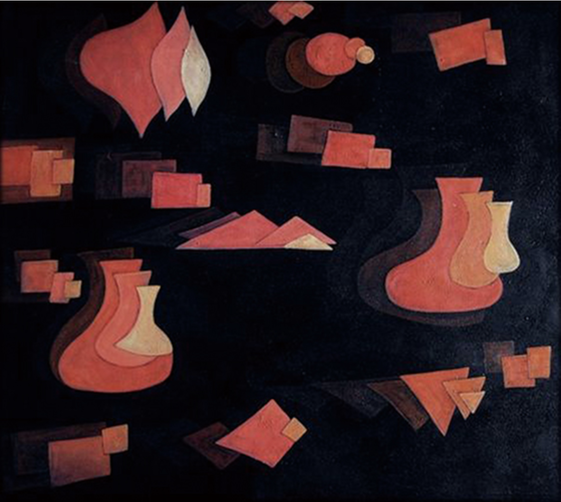 Rot 붉다 (독일어)이고 Fuge는 같은 음이 반복되는 작업입니다. 음악을 듣고 음악의 잔상, 강약, 떨림 등을 매우 감각적으로 표현하였습니다. 음악이 귀에 맴도는 듯합니다.