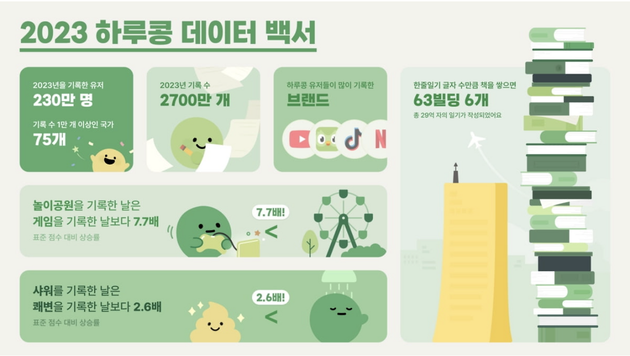 그만큼 소비자들에게 '하루'라는 이미지의 컬러중에 초록이 많이 소비된 것을 말할 수 있는 결과이지요. 많이 소비되었다거 해서 정답이라고 말하는 것이 아닙니다. 계절이나 소비의 컨셉, 주변 환경에 따라 언제든지 달라질 수 있는게 디자인이고 색상이지요. 하지만 중심의 아이덴티티가 있다면 주조색 보조색 강조색을 기준잡아 변하지 않는 것이 좋겠습니다.