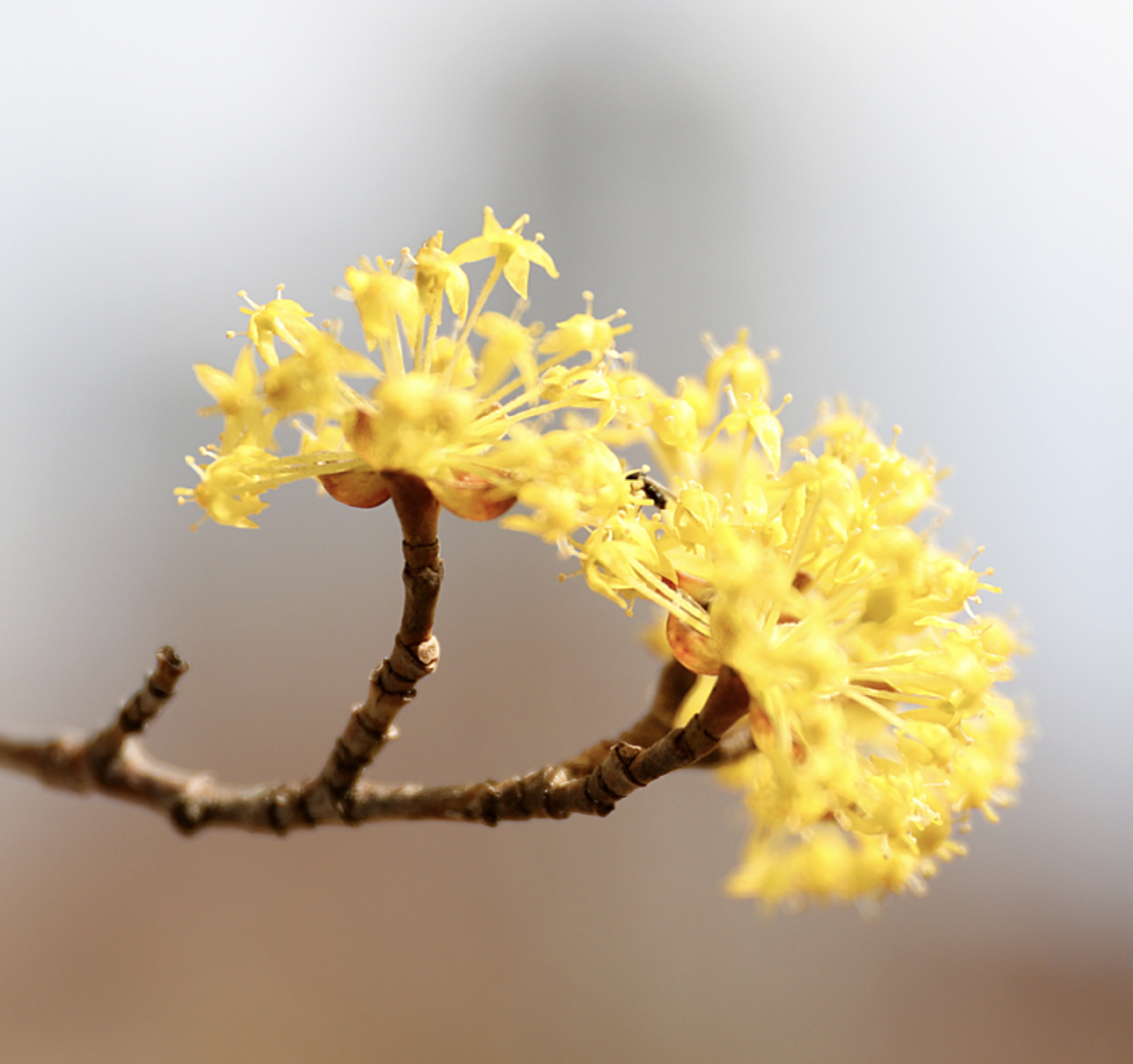 산수유는 3월에서 4월 사이, 아직 찬 기운이 남아 있는 시기에 황금빛 꽃을 피웁니다. 올봄에는 벚꽃도 많이 보겠지만 산수유 보러 경북 의성 산수유 마을을 한번 들러야겠습니다. 잔가지 끝마다 피어난 작은 꽃송이들은 마치 황금빛 보석을 흩뿌려 놓은 듯, 노란색은 따뜻함과 희망을 상징합니다. 봄이 다가옴을 알리는 이 색감은 겨울의 회색빛 풍경을 환하게 밝히고 있네요. 어찌 이렇게도 조밀조밀 모여서 봄을 노래하는지 신기하기만 합니다.