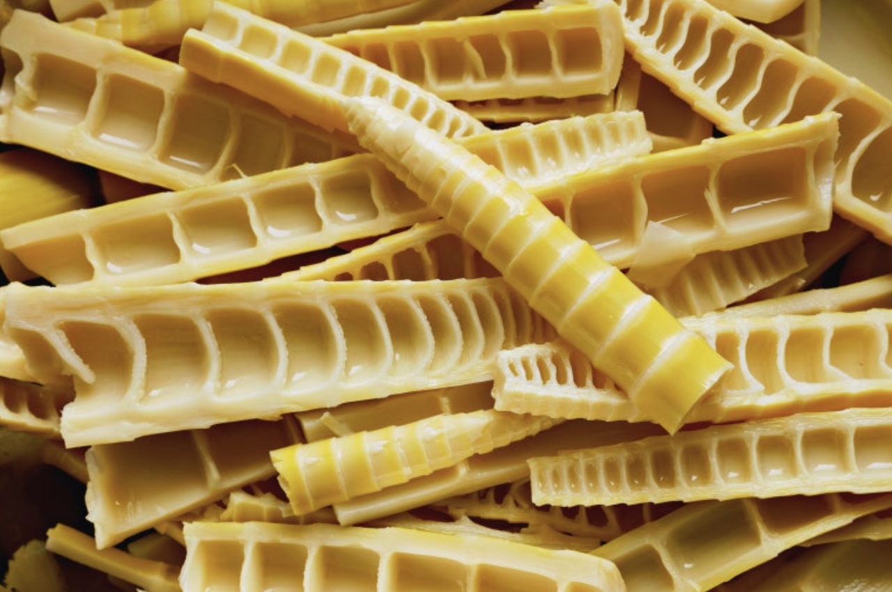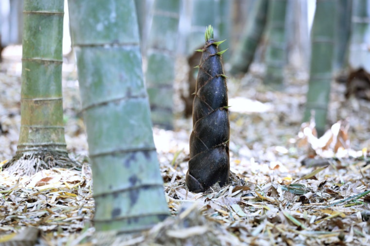 갓 돋아난 대나무 순은 갈색 혹은 짙은 보랏빛을 띱니다. 이 단계에서 죽순의 표면은 부드럽고 촉촉하며, 껍질이 얇아 손으로 쉽게 벗길 수 있습니다.