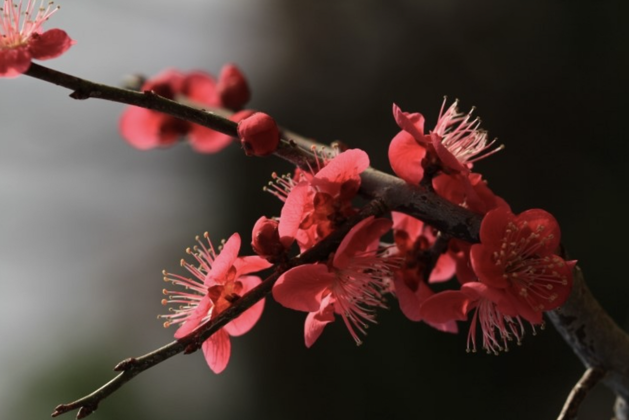 강렬한 붉은색을 띠는 매화는 생명력과 기백을 나타냅니다. 중국에서는 길상(吉祥)의 의미로 여겨지며, 장수와 행운을 기원하는 꽃으로 많이 사용됩니다.
