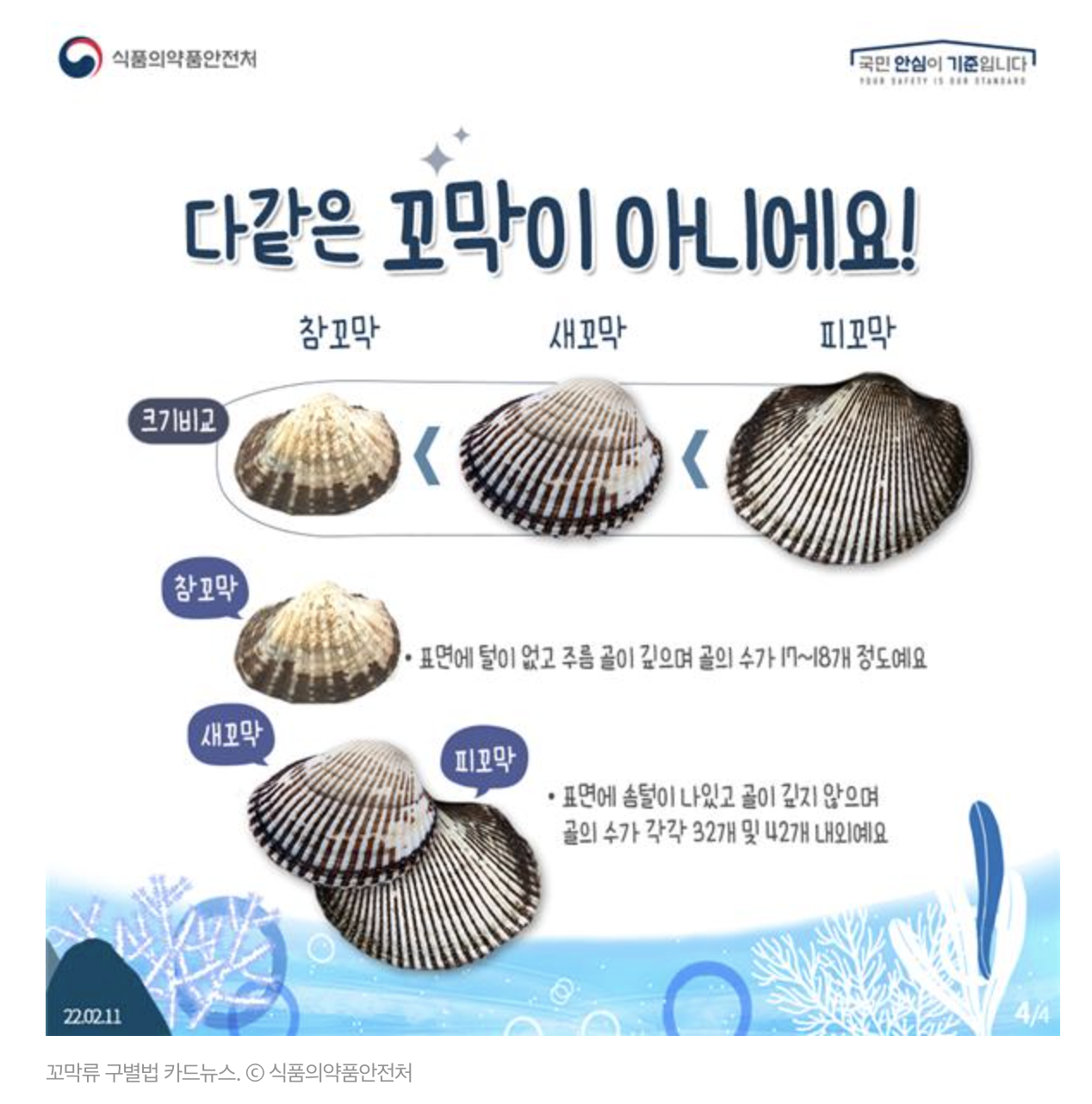 꼬막 껍데기와 살의 색상으로 알아보는 신선도