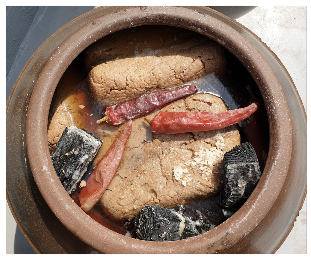 메주는 한국 전통 발효 음식의 시작점입니다. 메주가 빚어지는 과정에서 콩의 종류와 발효 과정은 다양한 색의 변화를 경험할 수 있습니다. 시간의 흐름과 함께 달라지는 메주의 색은 발효의 신비를 담고 있습니다.