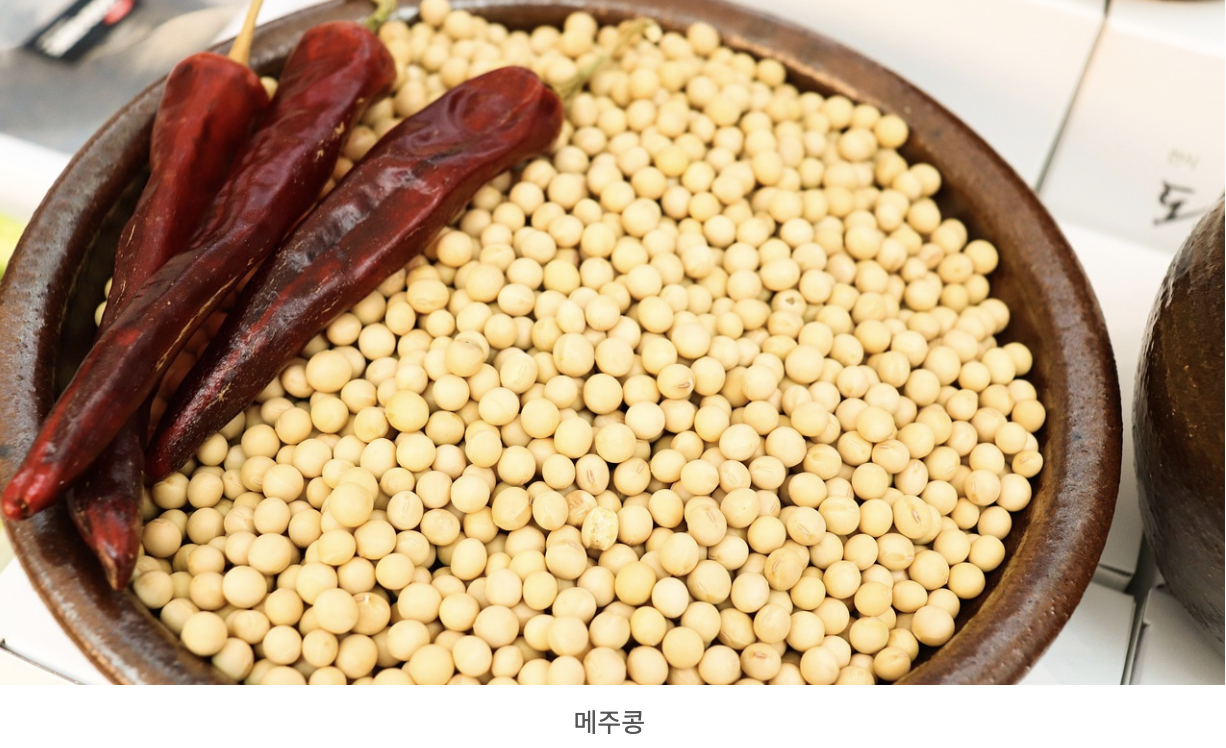 메주를 만들기 위해 가장 많이 사용되는 콩은 노란빛을 띠는 국산 대두입니다. 특히, 재래종 콩이나 메주콩이라 불리는 품종은 단단하고 단백질 함량이 높아 깊은 맛을 내기 좋습니다. 삶기 전에는 연한 노란빛을 띠지만, 삶아지면서 부드러운 베이지색으로 변합니다.