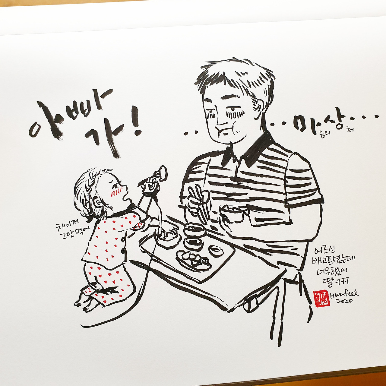 냄새 빠지게 창문도 열어놓고 후다닥 양치도 시키고 그릇들을 식기함에 반납하러 나가려다
