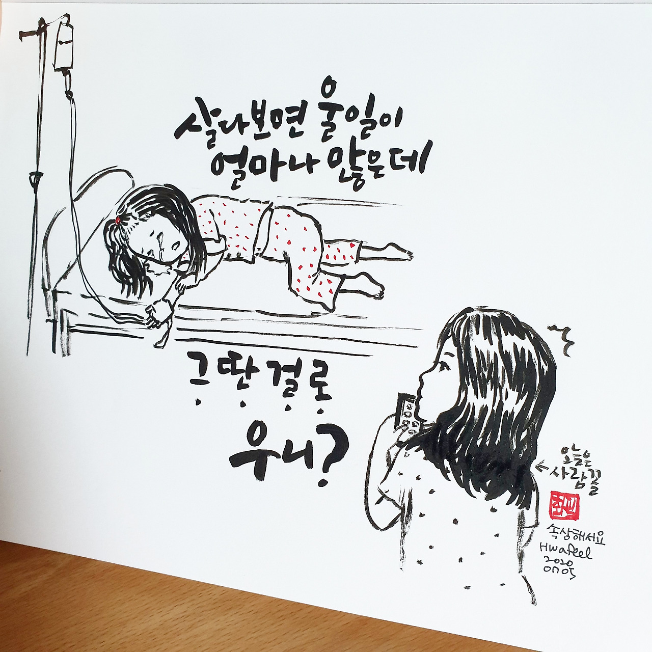 "살다 보면 울 일이 얼마나 많은데 그 딴 걸로 우니?" 핸드폰 안에 재미난 글에 빠져 너무나 단조롭고 단호한 말이 튀어나와버렸다.