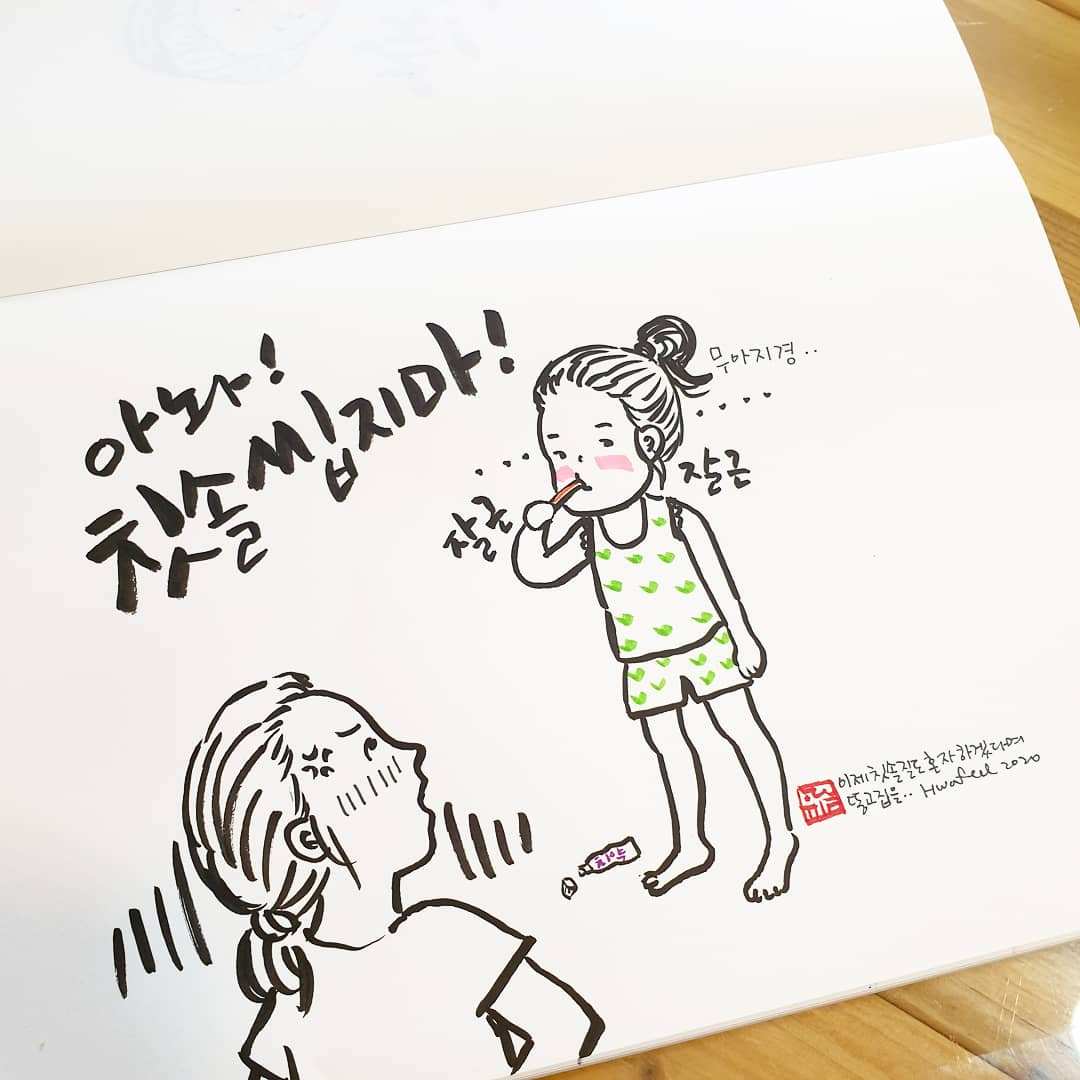 "엄마 내가 할래. 채이도 양치할 수 있단 말이예요"