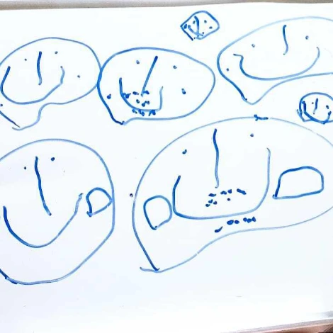 수많은 얼굴에 볼도 표현하고 수염도 표현한다