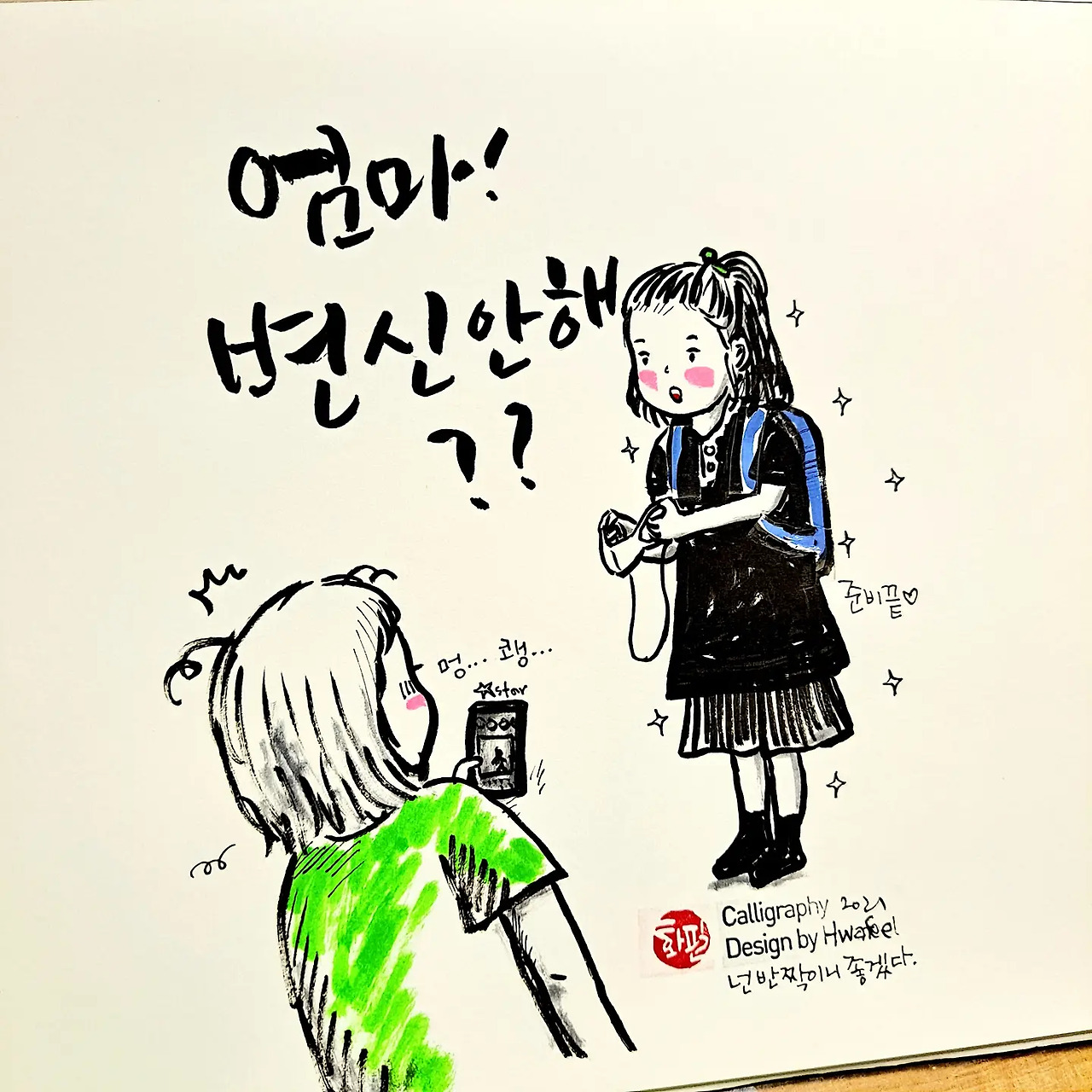 화필의 브런치입니다. 육아하며 캘리그라피를 쓰고 그림을 그립니다. 화필의 육아일기는 간단하고 맛있는 브런치 같은 그림과 글입니다. 가볍게 공감하고 순간을 즐겨 주세요.