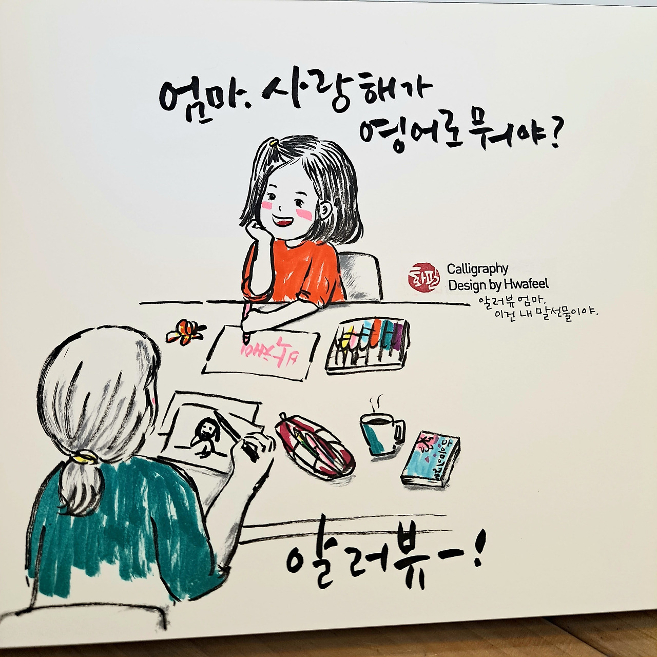 "엄마~~ 알러뷰우~~ 이거는 내 말 선물이야. 엄마는 내 소중한 선물이야.